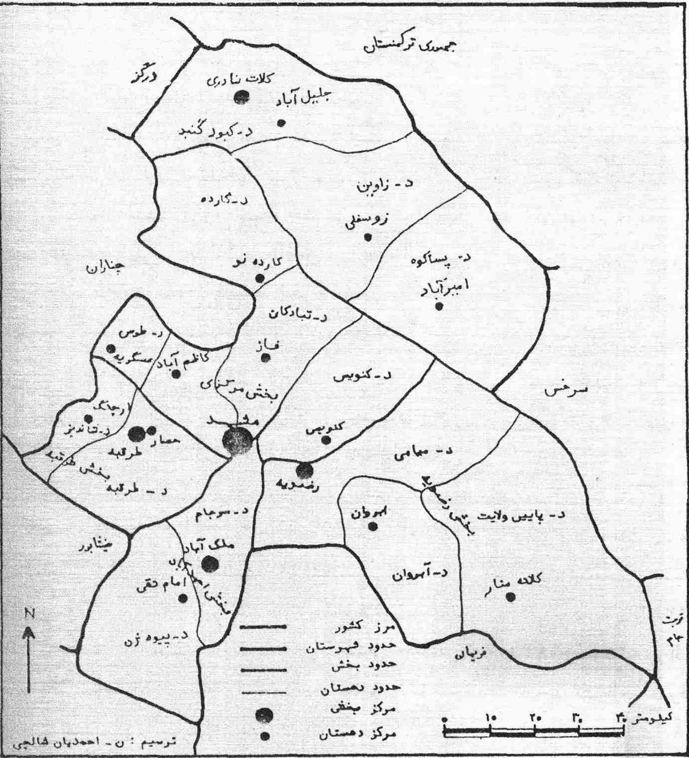 - () هو من تأليف مير مجد الدين محمد، يرجع تأليفه إلى عام 1004هـ، وتفتقد هذه النسخة المطبوعة إلى ترقيم صفحاتها، وقد اختص الفصل الثاني من الجزء التاسع في بيان بعض خصوصيات المدن، والموضوع المذكور أعلاه موجود في هذا الفصل تحت موضوع (طوس). ↑